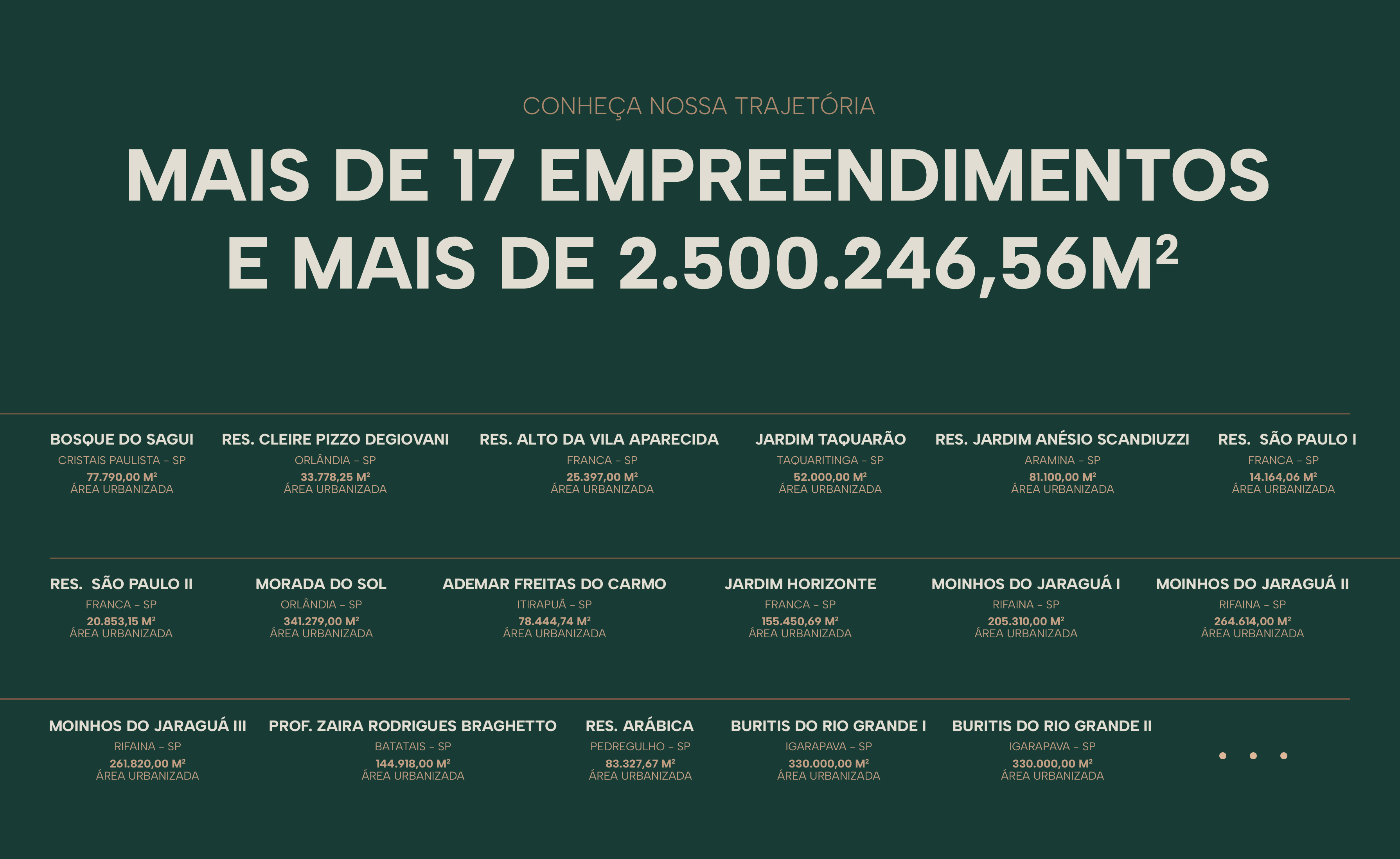 Nossos números são reais, temos mais de 2,5 milhões de metros quadrados urbanizados com estratégia e resultado.